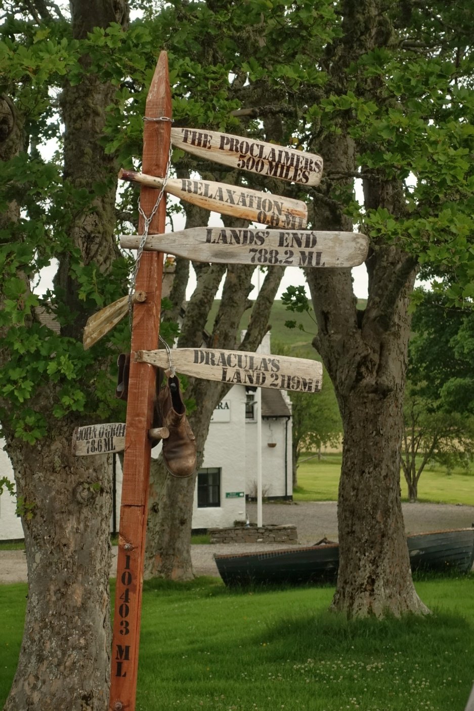 The Crask Inn is in the middle of nowhere. It’s owned by the Church of Scotland: the congregation must be outnumbered by sheep. We’d passed hill side workings on pristine land: wind turbines. This turns out to be a scheme which will benefit the local community to tune if £9million/yr