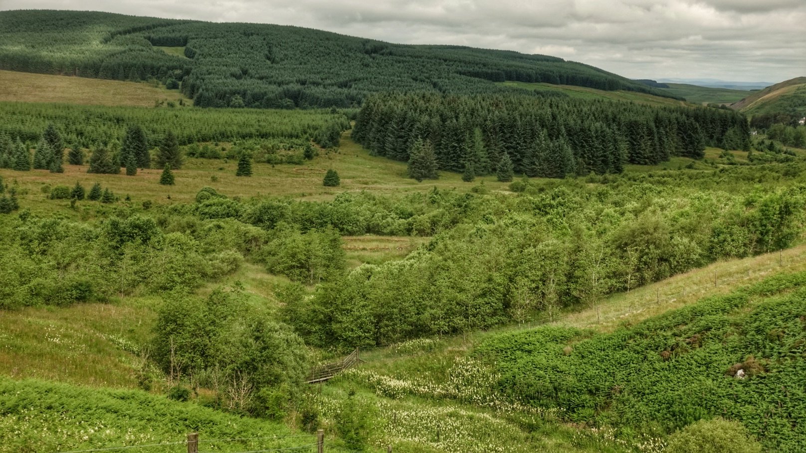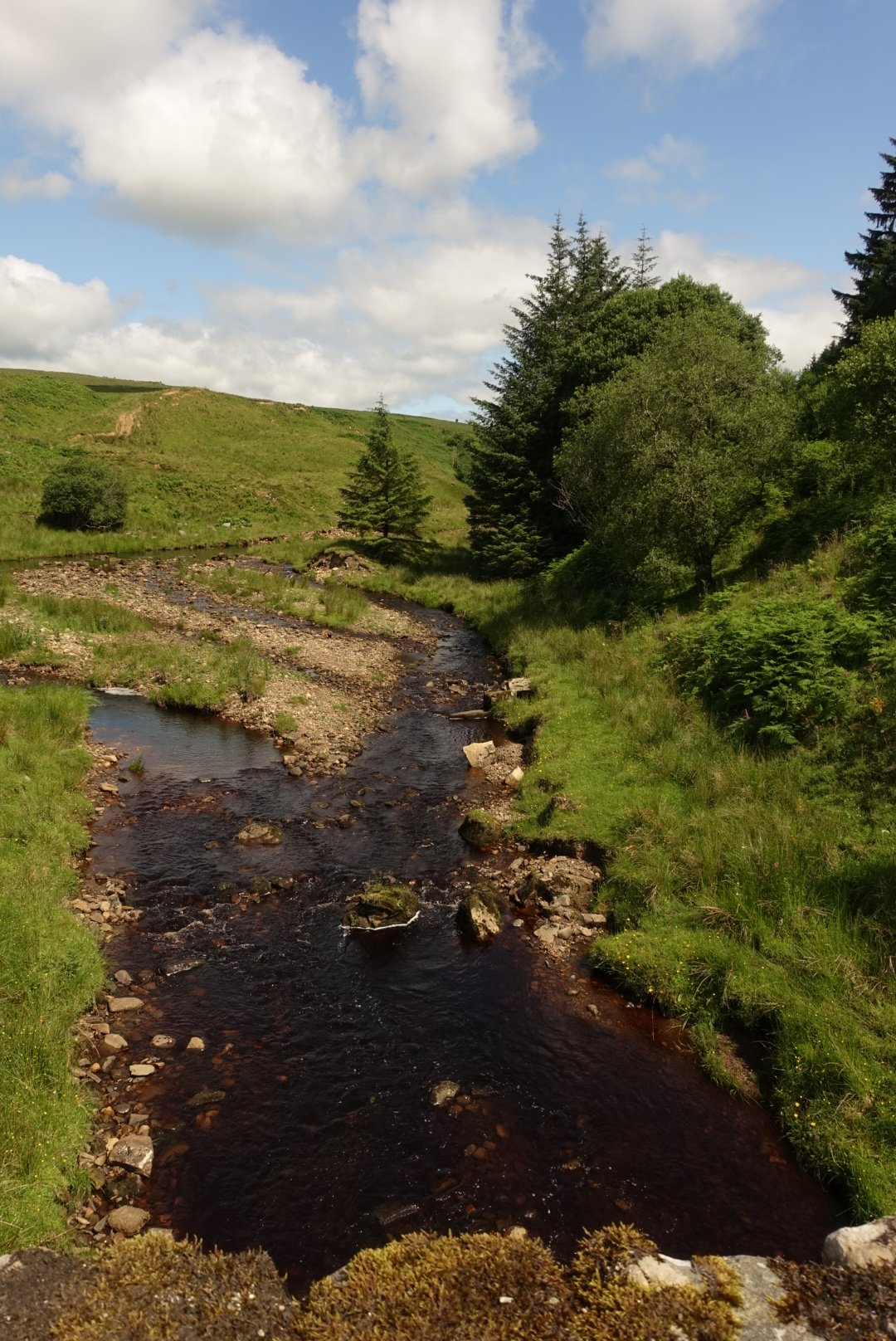 Soon across the border. An innocent wee stream is the border with England. It leads into the Kershope Forest and a changing, perhaps more manicured, landscape.