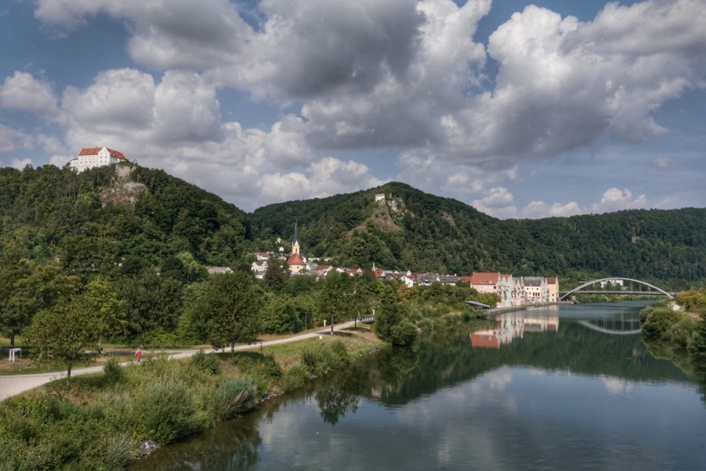 A river route today. Two rivers, as after 60k we joined back with the Danube. Which is getting big enough for cruise and pleasure boats. Prosperous villages, aspiring church towers. The occasional telecom mast, which makes a change and contrast from masts with somebody hung out to dry. New gods replacing old.