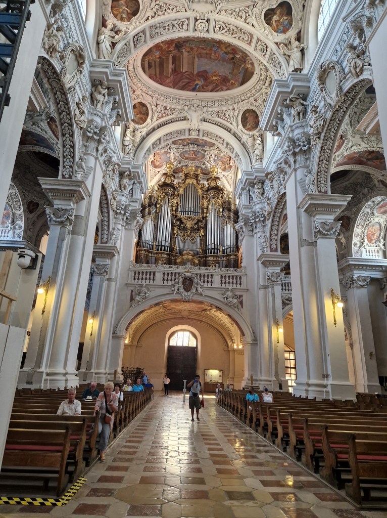 Passau is dripping with cruise ships and churches. The magnificent Baroque St Stephen’s 17974 organ pipes were in full throttle as we gaped at the over the top decor.