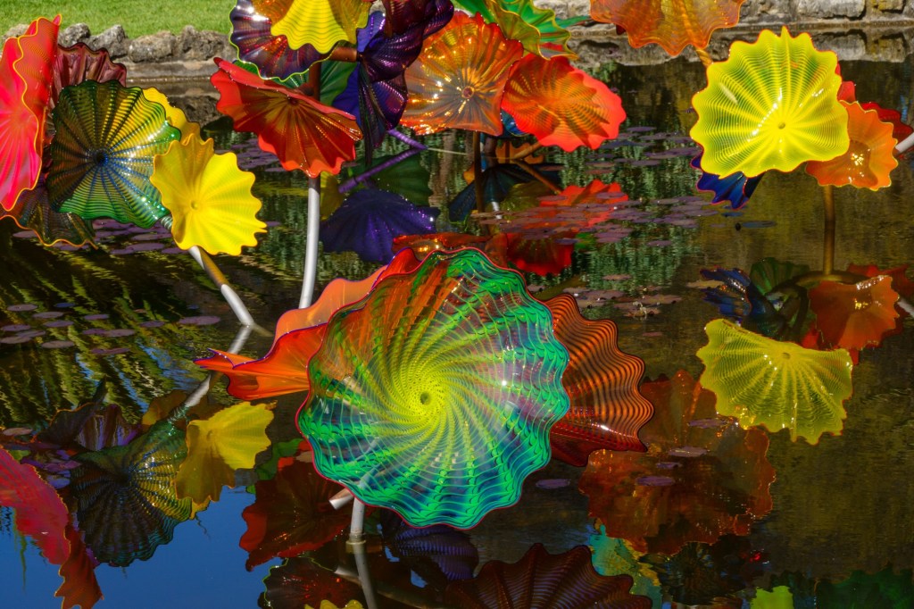 The main destination was the Botanic Gardens and its new exhibition of glasswork by Chihuly. Which opens tomorrow. Primarily a “lit” experience, we did see the bulk of the work throughout the park in the daytime. Colourful bobbles. Before I got my eye in, I thought I was looking at plastic bags covering something until I realised it was a genuine “hooly”. They were impressive, especially for blown glass – he must have long arms and large lungs.
