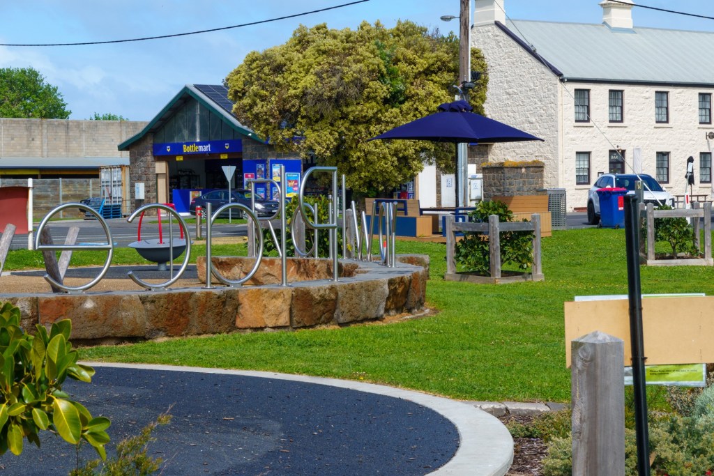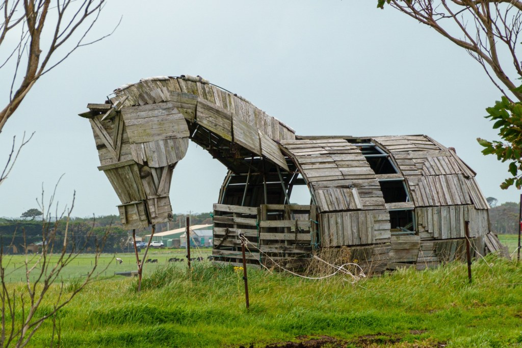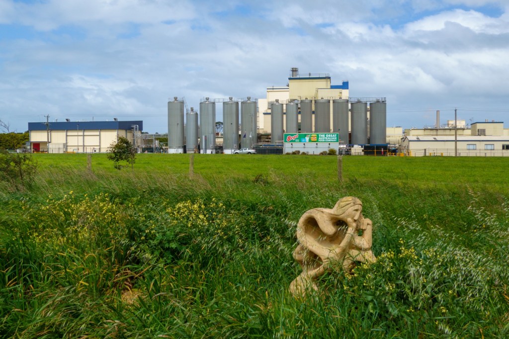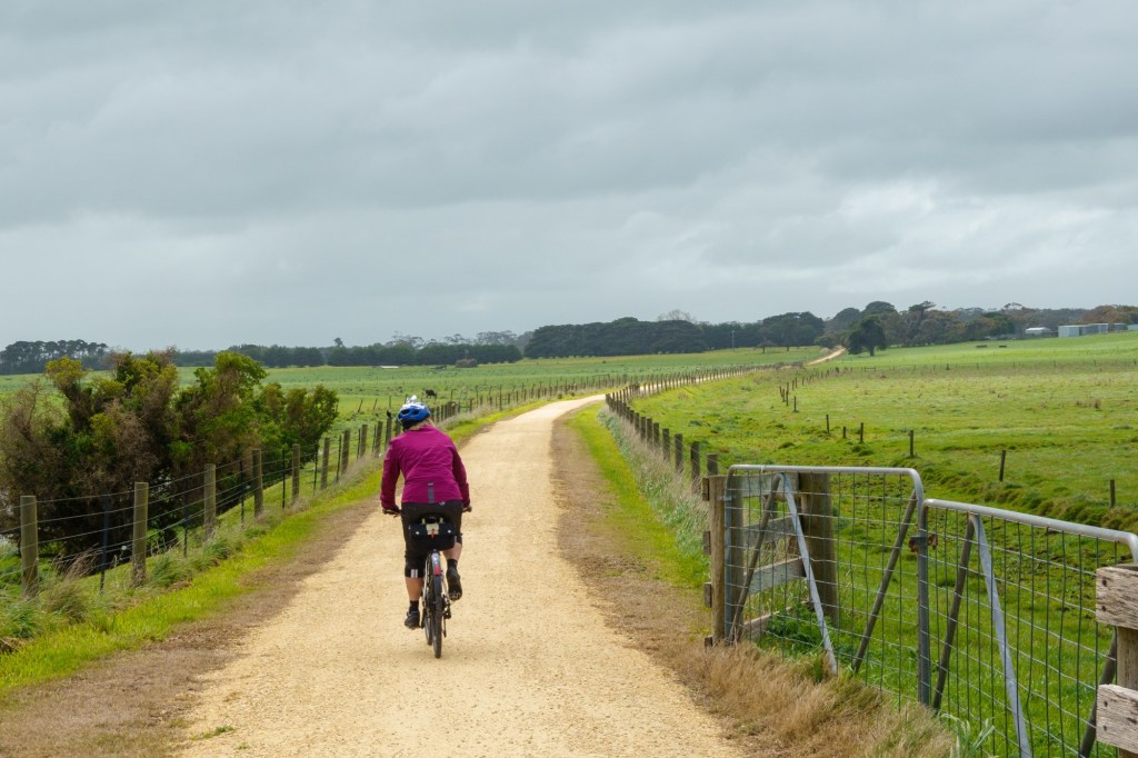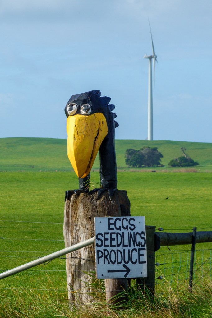 After lunch in pretty Port Fairy, we deviated from the prescribed route to take what turned out to be a delightful railtrail for the last 35km . Flat and then across a River estuary, it kept us entertained with art work and signs. As did the sign entering Port Fairy: welcome to the ancient (???) Port of Port Fairy. You’d never guess a town called Port Fairy on the coast would be a port. It could have said “named after HMS Fairy who berthed here in ancient times. ”