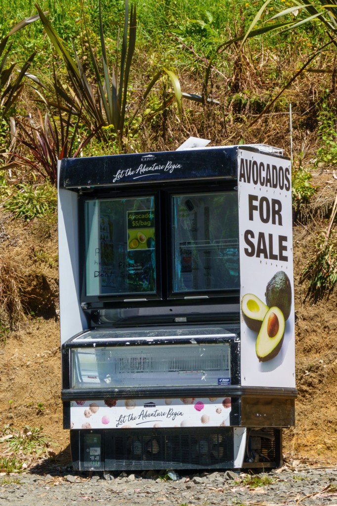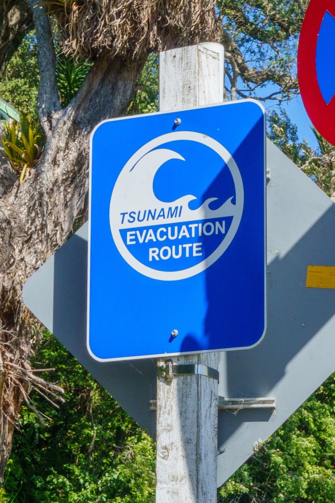 In between it’s farm land and the occasional small [tourist] town. I do like the way there is a board telling folks when it is “service” day – when bins will be collected. There’s also more hills – who would have thought that in this volcanic area (granite from the peninsular built Wellington). Tsunami signs have replaced Australia’s fire warnings.