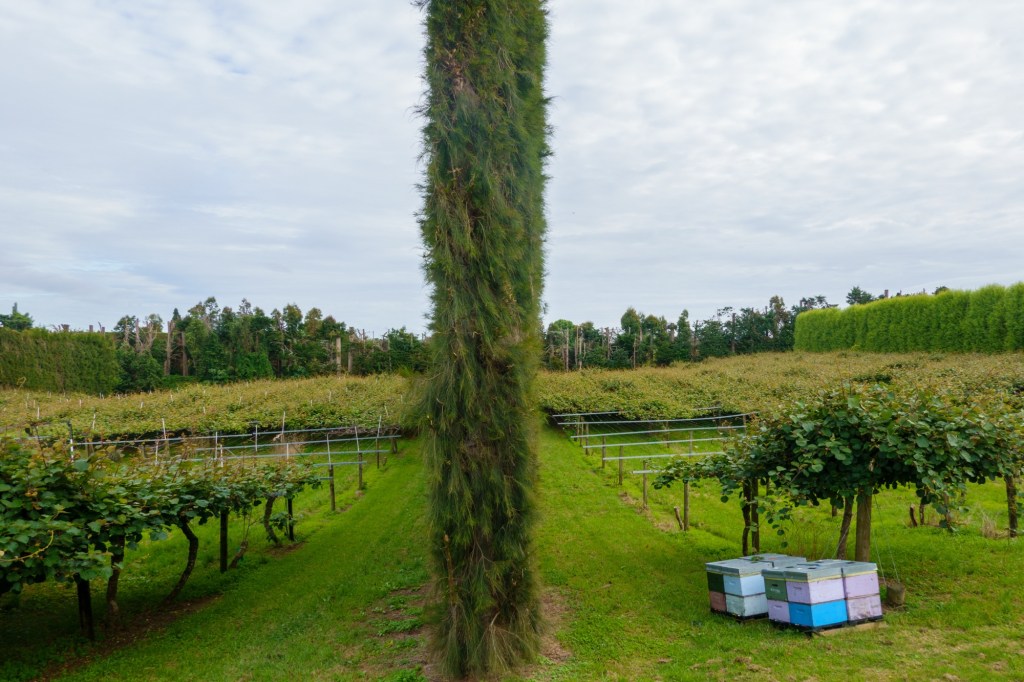Over 400 hectares of avocado trees planted, 85% in the Bay of Plenty where we are – and 2% of global production – stone me! The Chinese Gooseberry (it was changed to Kiwifruit in 1959) has 14500 hectares of production – 80% in the Bay of Plenty. Explains the scale of the well manicured wind- breaks.