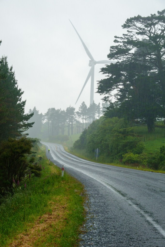 A very rural day. Leaving Palmy (as that’s easier to write) the unforecasted rain started and kept up in increasing intensity for the next 48k. Which happily coincided with a cafe stop. One main hill today – as it was raining I couldn’t see it, just felt it!