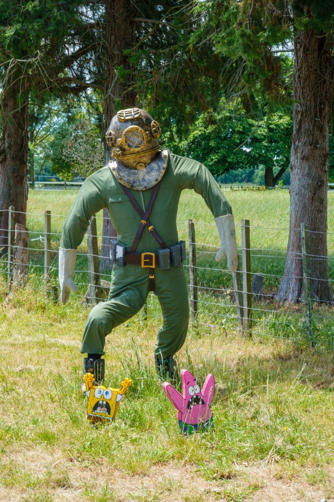 Then a lovely bit through farm lands surrounded by hills reminscent of the Scottish Borders. Happily there was a scarecrow competition (or what is left of them).