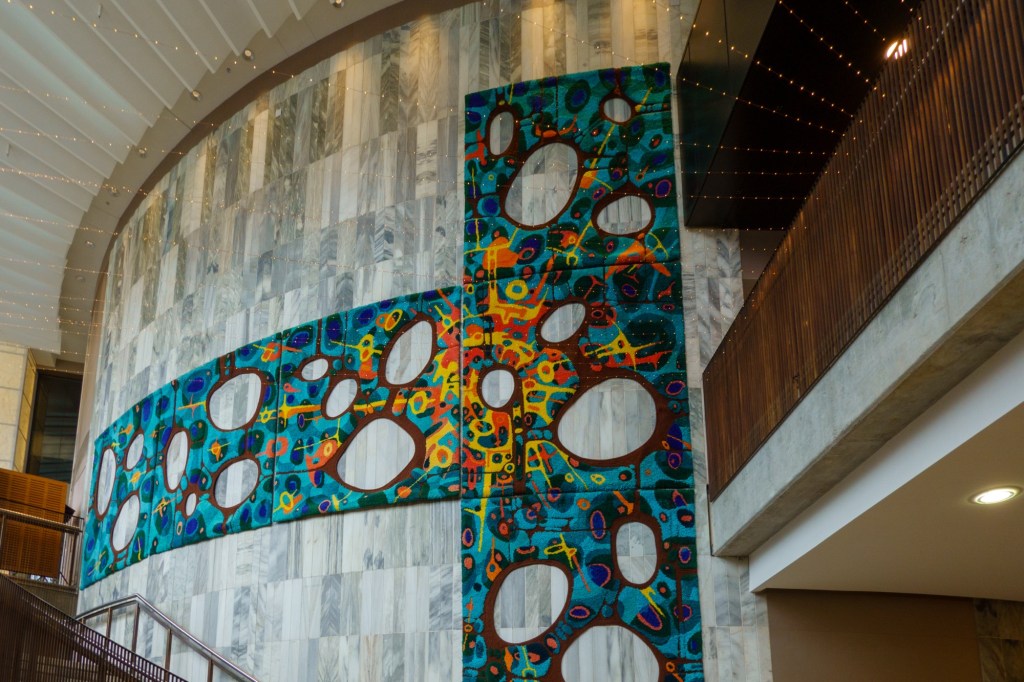 The new parliament building is of fine stone – adjacent to it is the Beehive, which houses the Goverment offices. No time for a tour – the carpet (tapestry) hung on the entrance hall is quite something.