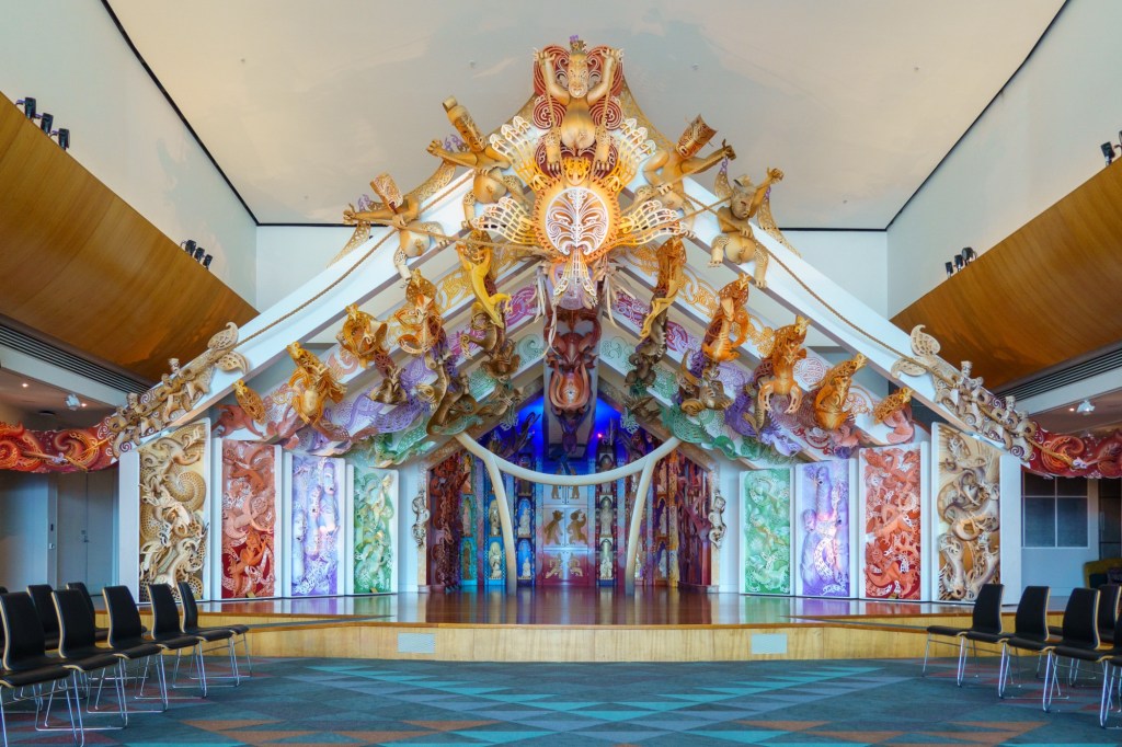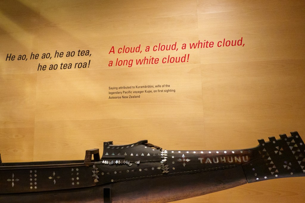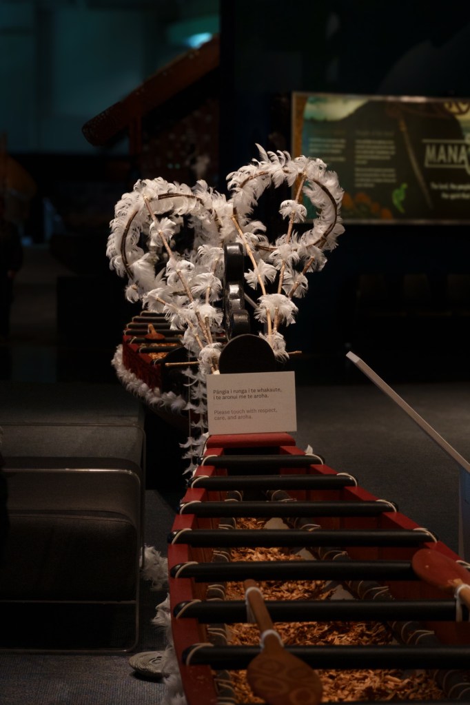 Boat decoof Albatross feathersOarsMeeting hallTe Papa museum
