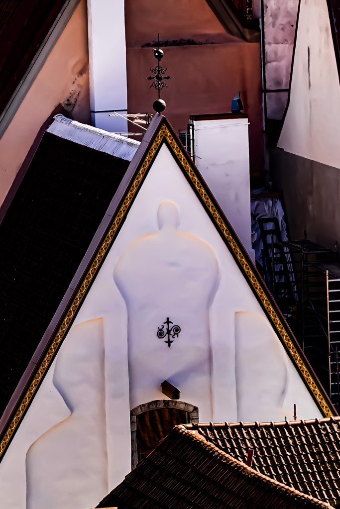 Quite a religious place too, once, if them number of competing spires are anything to go by. The buildings have a detailed history on them: detail overload. Suffice to say developed in 13-14C, changed hands and useage, redeveloped, some bombed 1944 and rebuilt. What is interesting is the predominance of stone vs timber. Tiled roofs vs thatch, no solar panels.