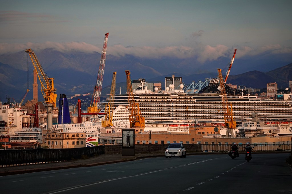 Hugging the coast along the Italian Riviera (Liguria region) – along with the holiday traffic, people going to work. The first 20km to get out of Genova were the busiest (aka focussed stress) with traffic coming from all directions. The little scooters were having a ball, weaving their magic dance around their bigger siblings. And making more noise about it.