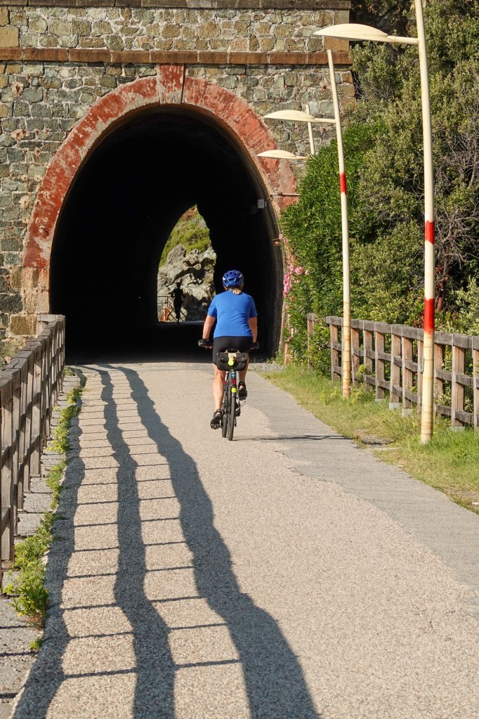 Part of the route was on the former Genoa-Ventimiglia railway line. Through tunnels, which add a frisson of water dripping in darkness to keep things exciting. The shame is, today, it wasn’t for longer. Tomorrow more please!