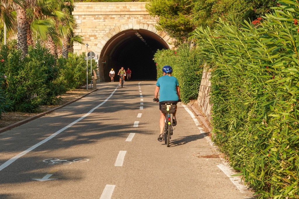 Today we continued on the railway track for a glorious 15miles, then in and out of narrow street towns, hugging the coast. The route avoids Monaco: too dense with lots of roads now in tunnels as they pack in more unreal estate. So a Tour de France hill it was. No records were broken.