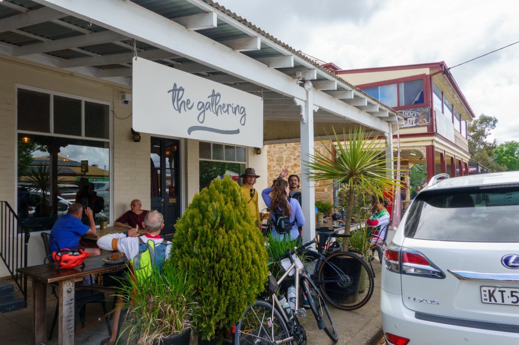 For a part the route becomes lined with large estates – probably Canberra’s gentry escapes. Then into more rural areas – a touch greener than before with hairy merino and cattle chewing the cud. Lots of heavy goods wagons in places to/from a quarry – all being careful as they thunder by.