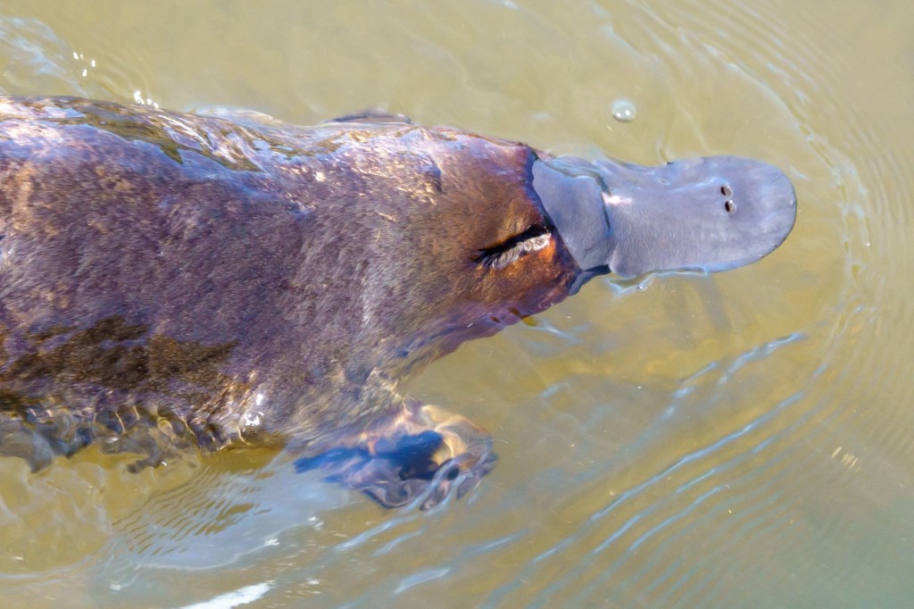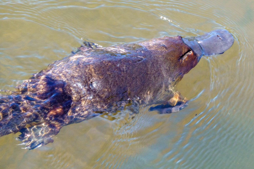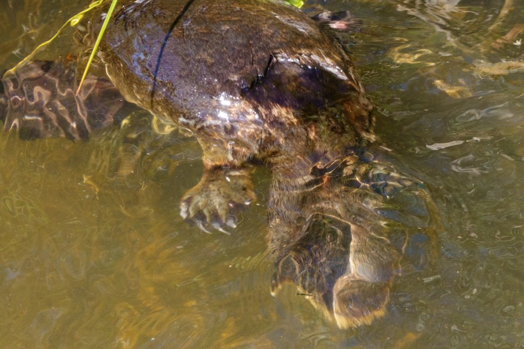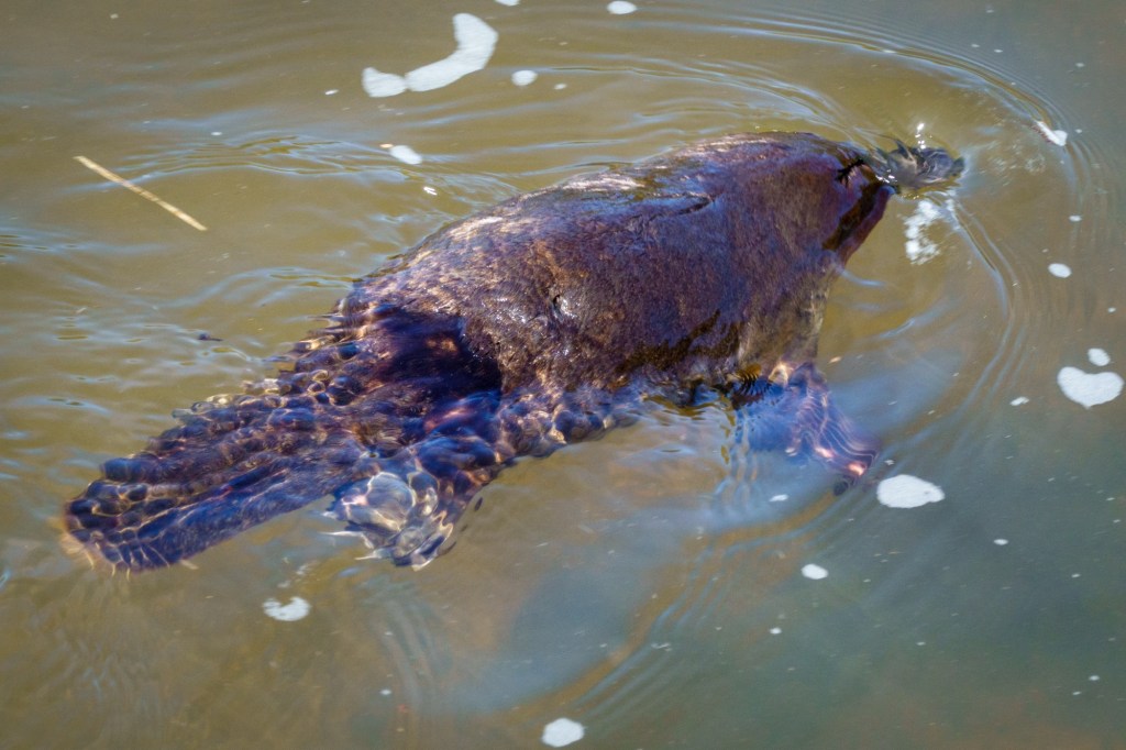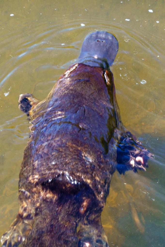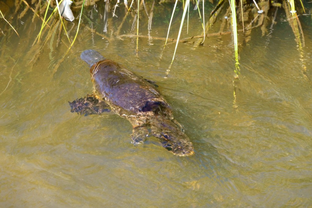 Platypus came out to wave: the Tasmanian Hen came to chase me from her chicks. Proud off her heritage as one of the few unique Tasmanian birds.
