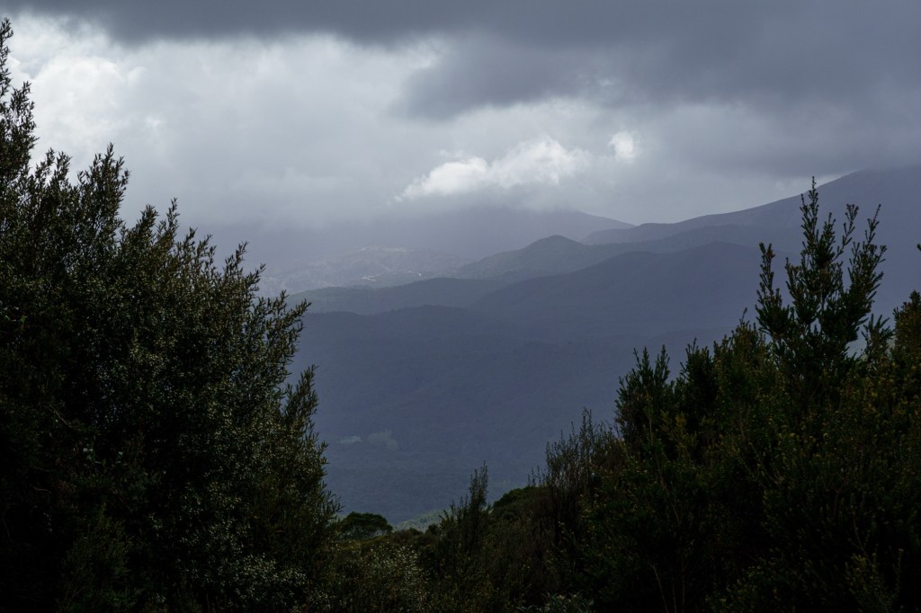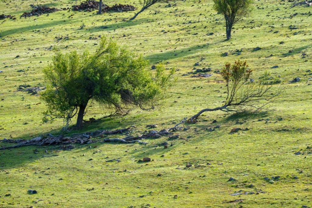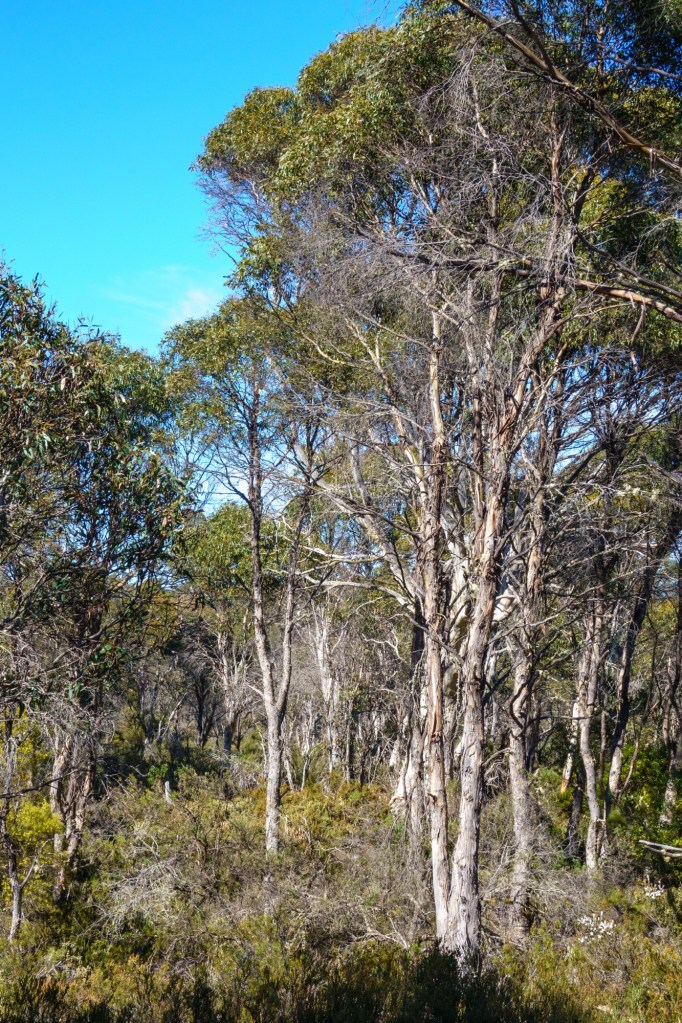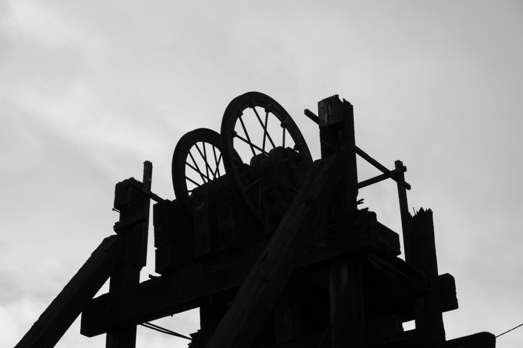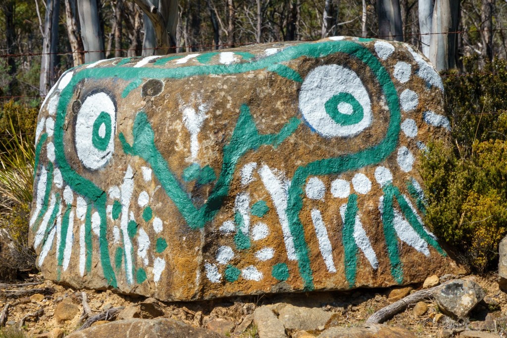 Sheltering from the rain in a road side info booth you learn about the Mount Lyell operations (the area is rich in copper, tin, lead, zinc and other minerals). In nearby Zeehan, the workers used their headlamps to see going home in daylight: yellow smog from the sulphur processes polluting the air, ground, lungs. 100 million tonnes of tailings (the left over bits from the processing of mineral ore) were dumped into the rivers.
