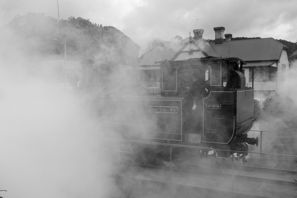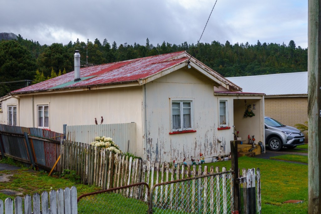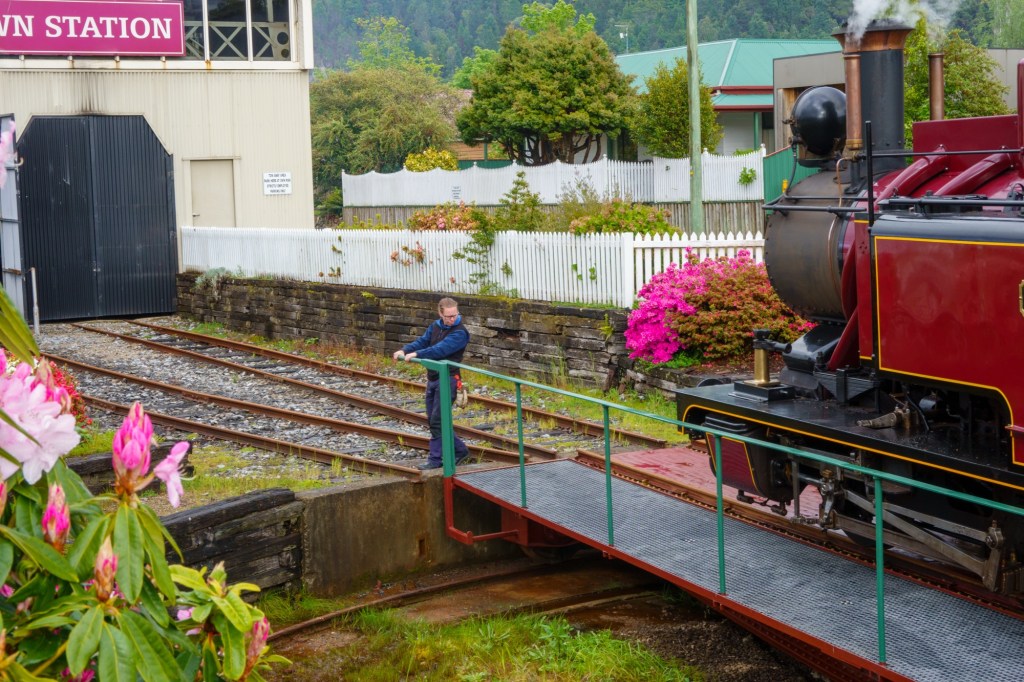 The road to Queenstown wasn’t built until 1932, relying on the railway. The Queenstown – Strahan line is still opertional today as a tourist attraction. Lovely to see the turning circle in Queenstown being used as we left, though a romantic image probably wasn’t on the thoughts of the residents when the mines and smelting were in full operation.