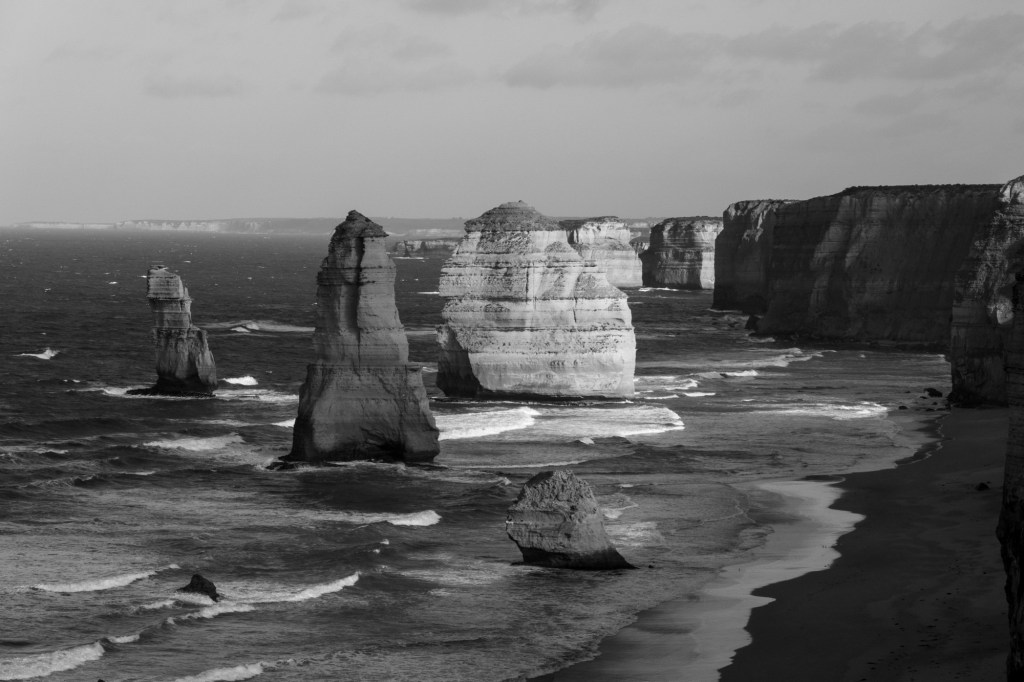 The story of how the 12 Apostles came to be named (there’s not 12) is the original old horse coach road was very lump and bumpy as the passengers were shoogled about. They started counting the stacks. 1, 2, 3, lots! 11, 12. Sounds as good as any other reason and the tourist information person must have told it many times.