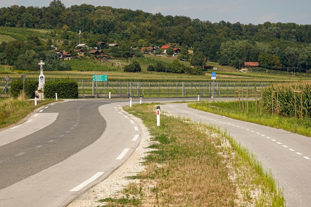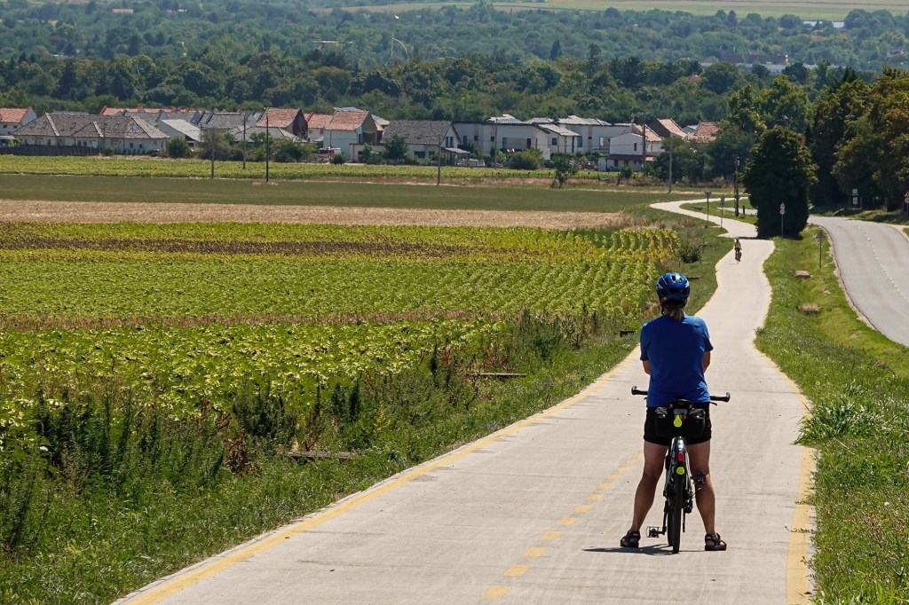 From an old Spa town in Hungary to a new Spa Town in Slovenia. In between lovely quiet villages (and why not on a hot Sunday?) and plains: either with thirsty sunsflowers or harvested crops. Shade came in the trees, generally happily overlapping a few ups.