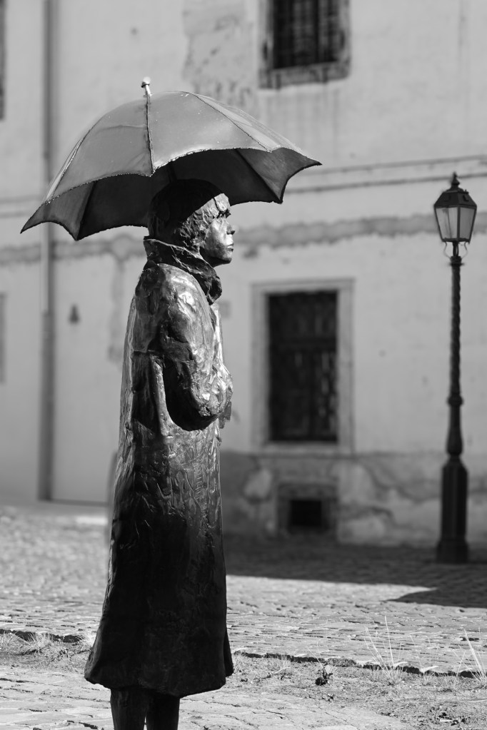 There are so many statues watching: small, large; metal, stone; stern, poignant, funny. Most people go past, heading to the honey spots and jostle for selfies.