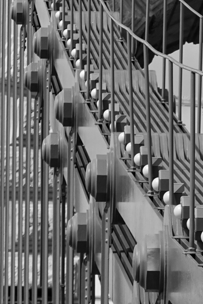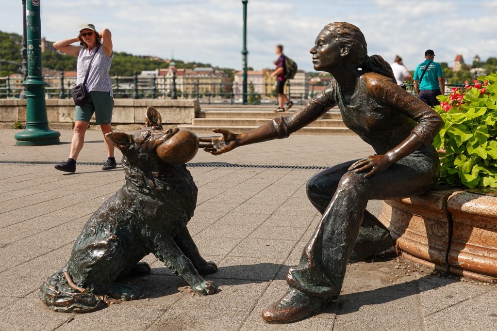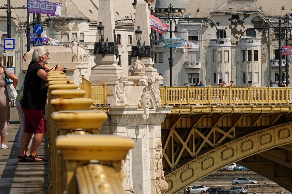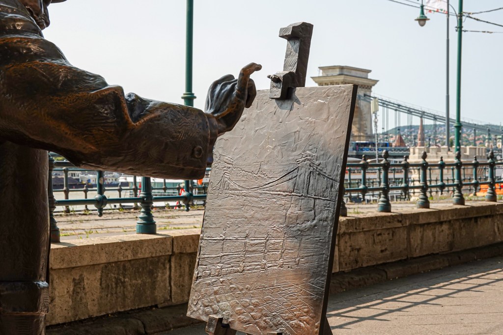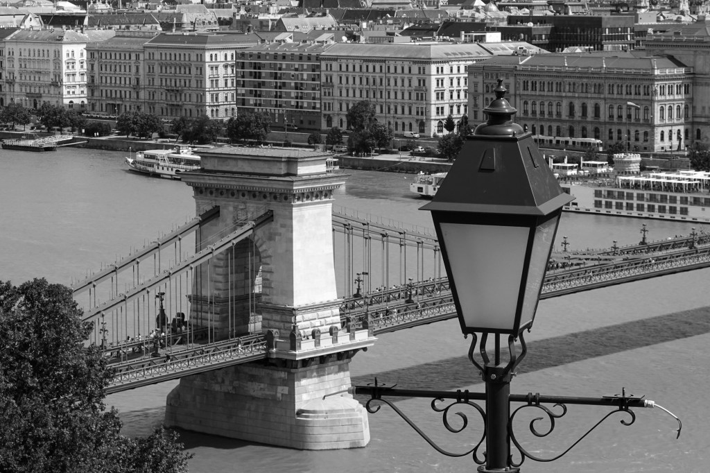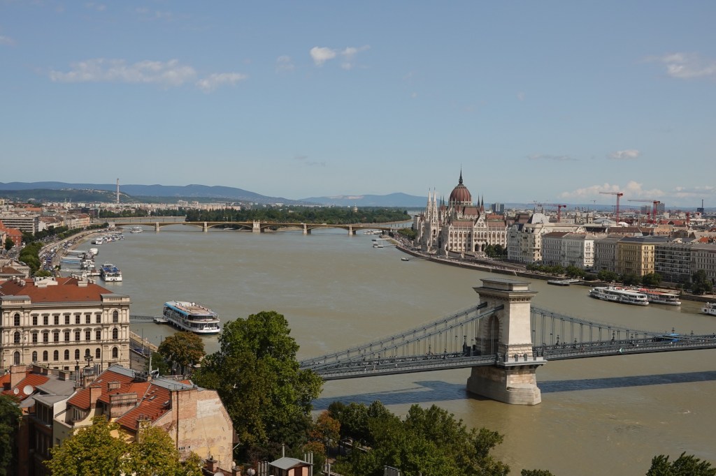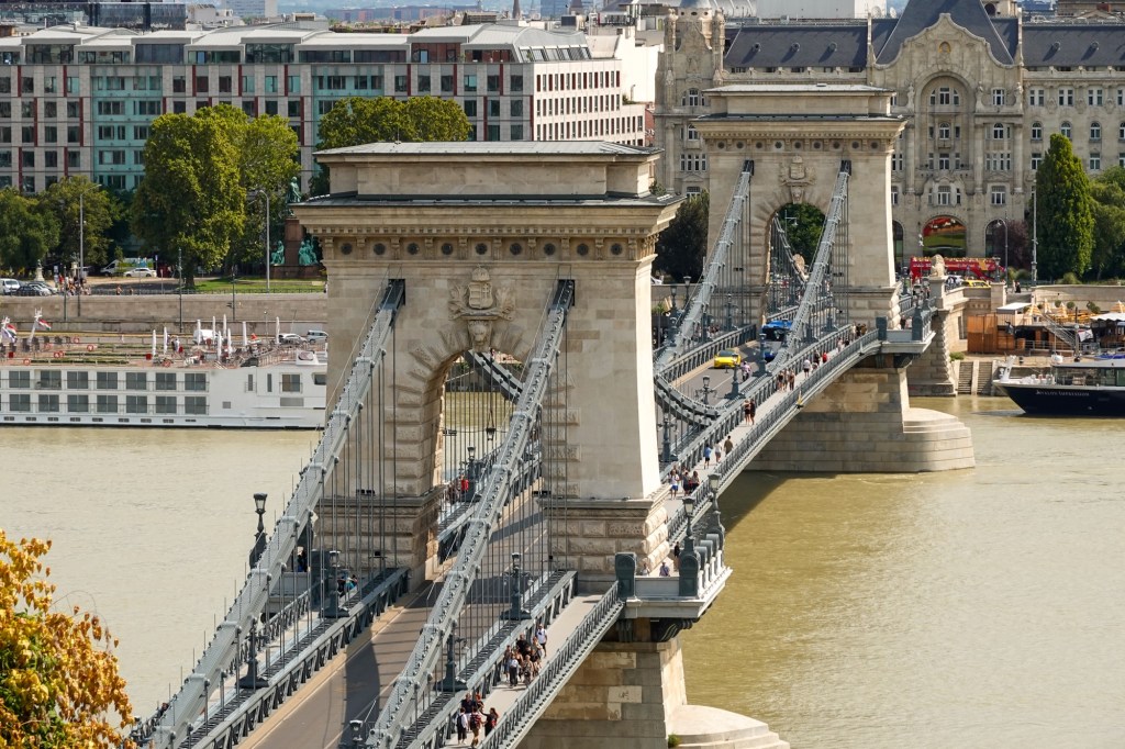 We crossed to explore the Buda side, leaving Pest for tomorrow. Great rivers demand great bridges and the Danube especially. The most famous is the Chain bridge, relieved of is refurbishing scaffolding we last saw it decorated with. The romantic name derives from it being Hungary’s first such suspension bridge with the cruising bit held up by chains.