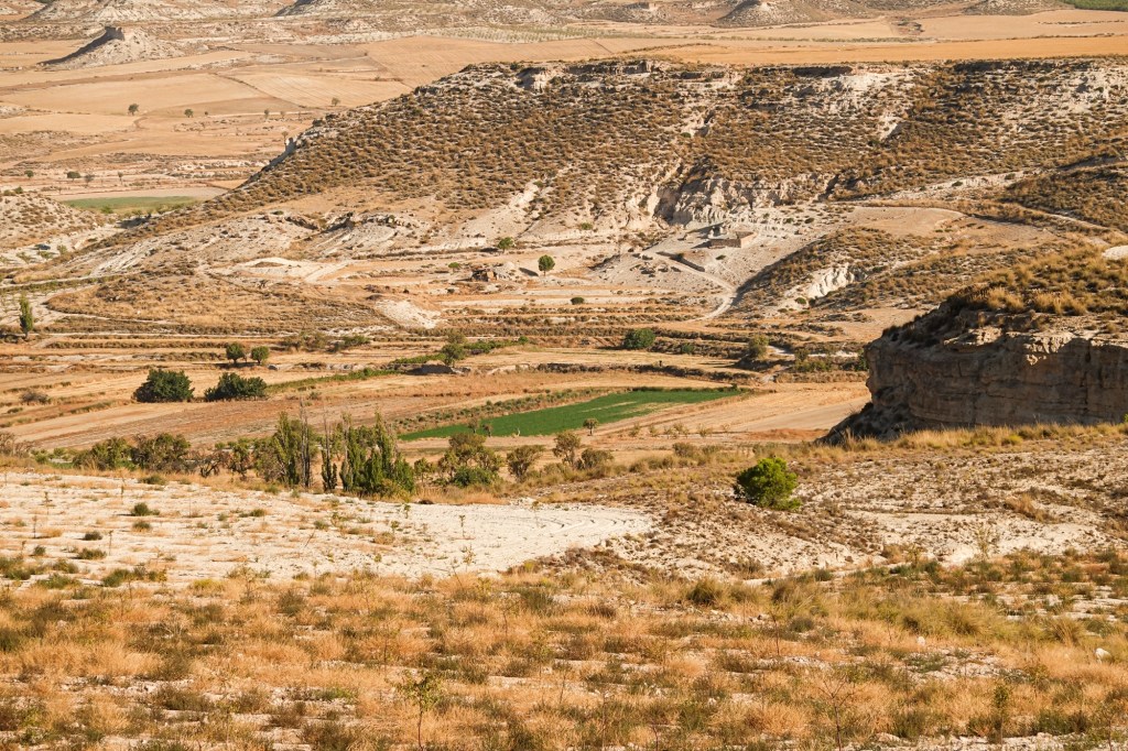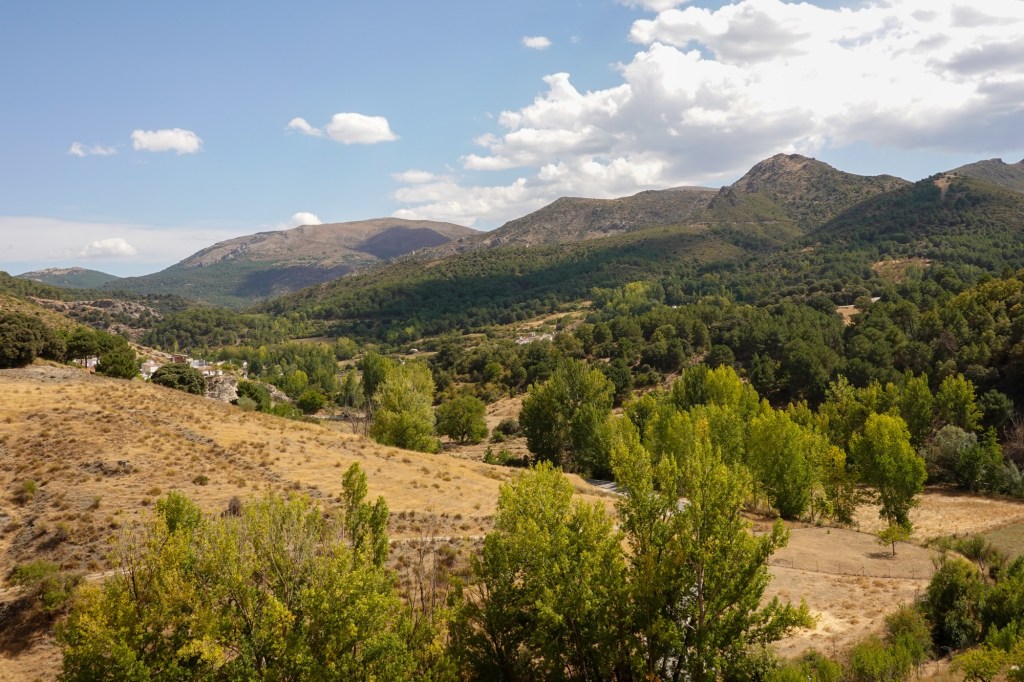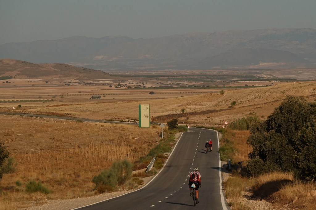 So we grasp the final 1000m over the first 30k with all four wheels. Shortly after meeting Barbara’s friend from Neath at a view point (they were on holiday), a great descent to the plains below.